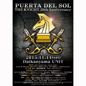 11月14日に代官山UNITで開催される『PUERTA DEL SOL THE KNIGHT 20th Anniversary』に HISASHIが恵比寿最速(仮)のギタリストとして出演致します。